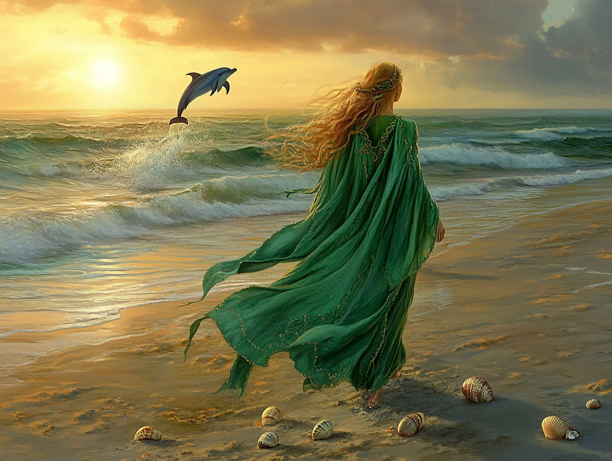 the greek goddess Persephone dressed in a green flowing robe walking through a field spreading multicolored flowers at her feet. Early morning sunrise in the background, photorealistic --ar 4:3 --v 6.1 Job ID: ab8bed96-75c2-46c5-8163-5b7455446fa9